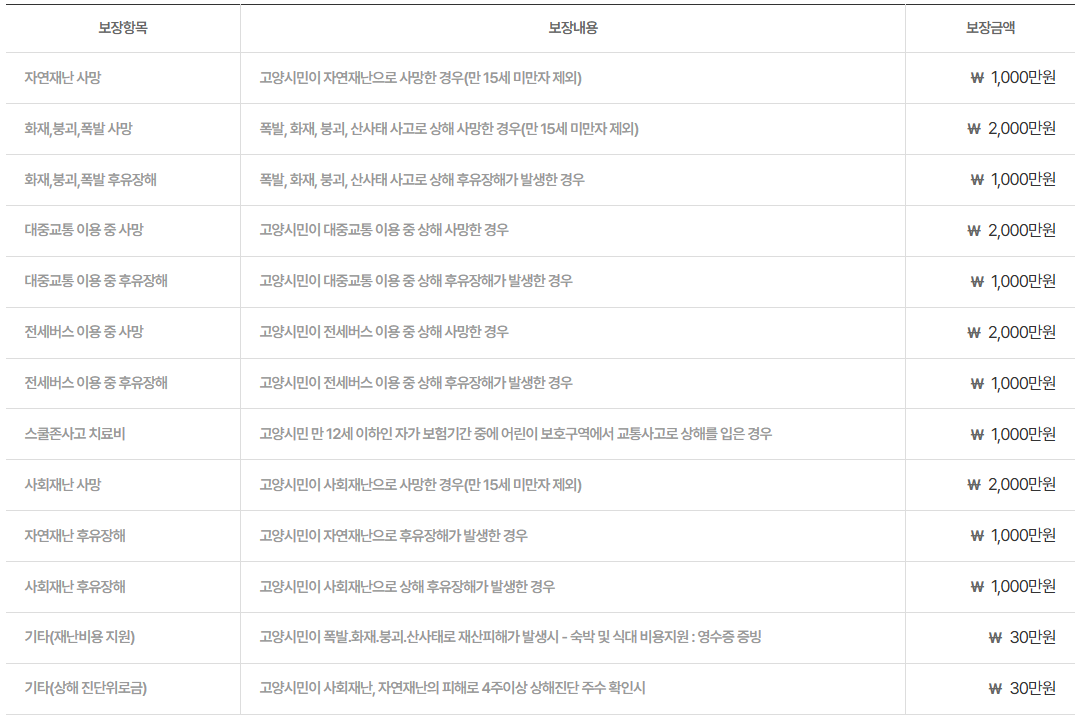 고양시 시민안전보험의 보장 내용