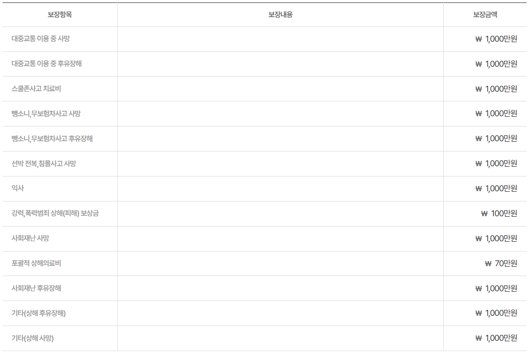 - 대중교통 사고, 스쿨존 사고 등 특정한 조건의 일반 사고도 보장됩니다.