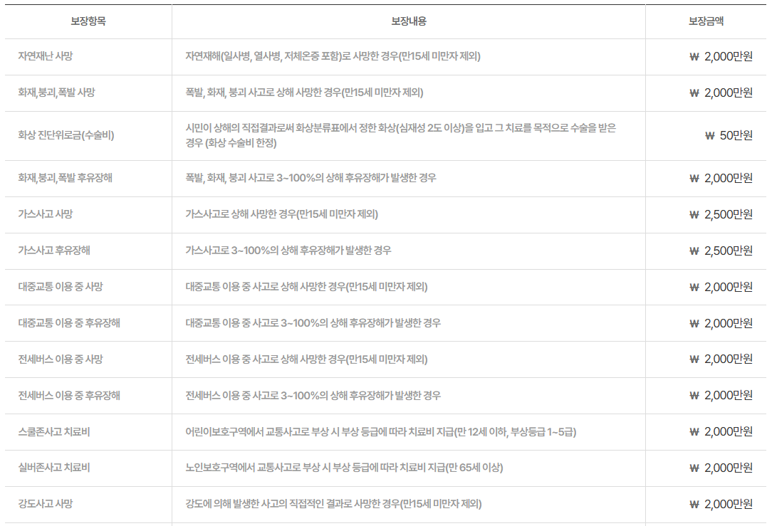 대구 시민안전보험의 보장 내용