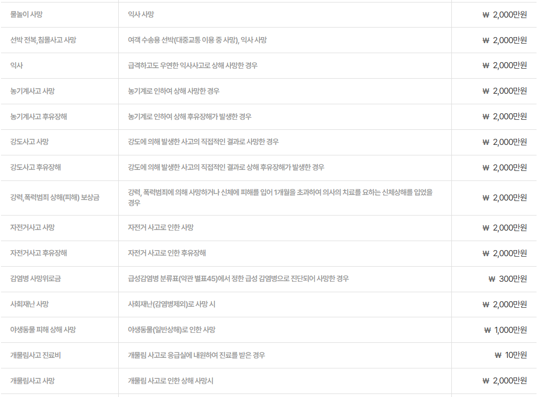 - 대중교통 사고, 스쿨존 사고 등 특정한 조건의 일반 사고도 보장됩니다.