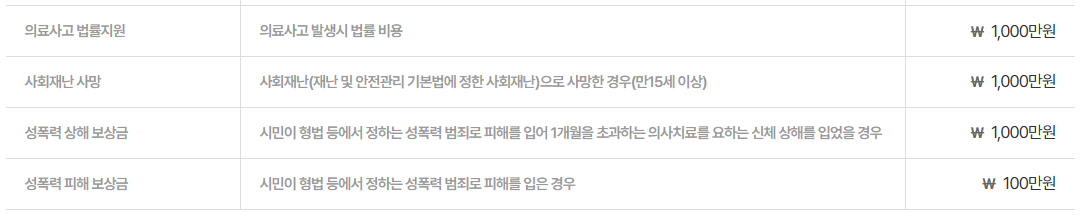- 대중교통 사고, 스쿨존 사고 등 특정한 조건의 일반 사고도 보장됩니다.