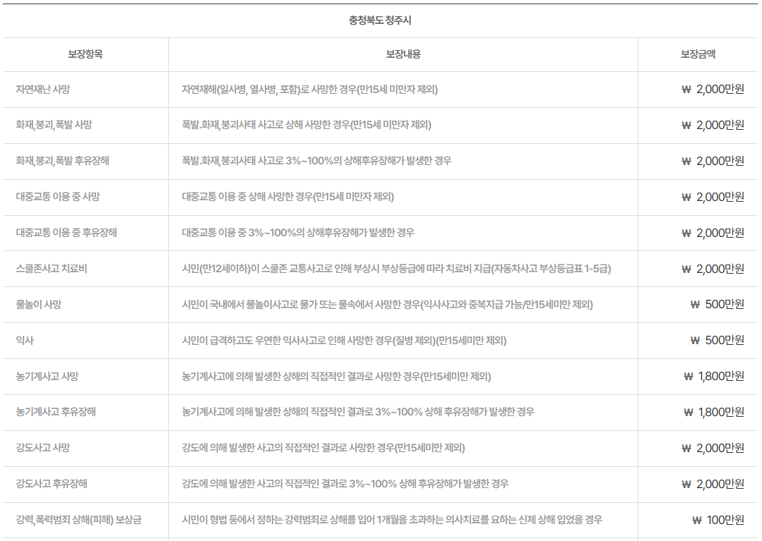 청주시 시민안전보험의 보장 내용