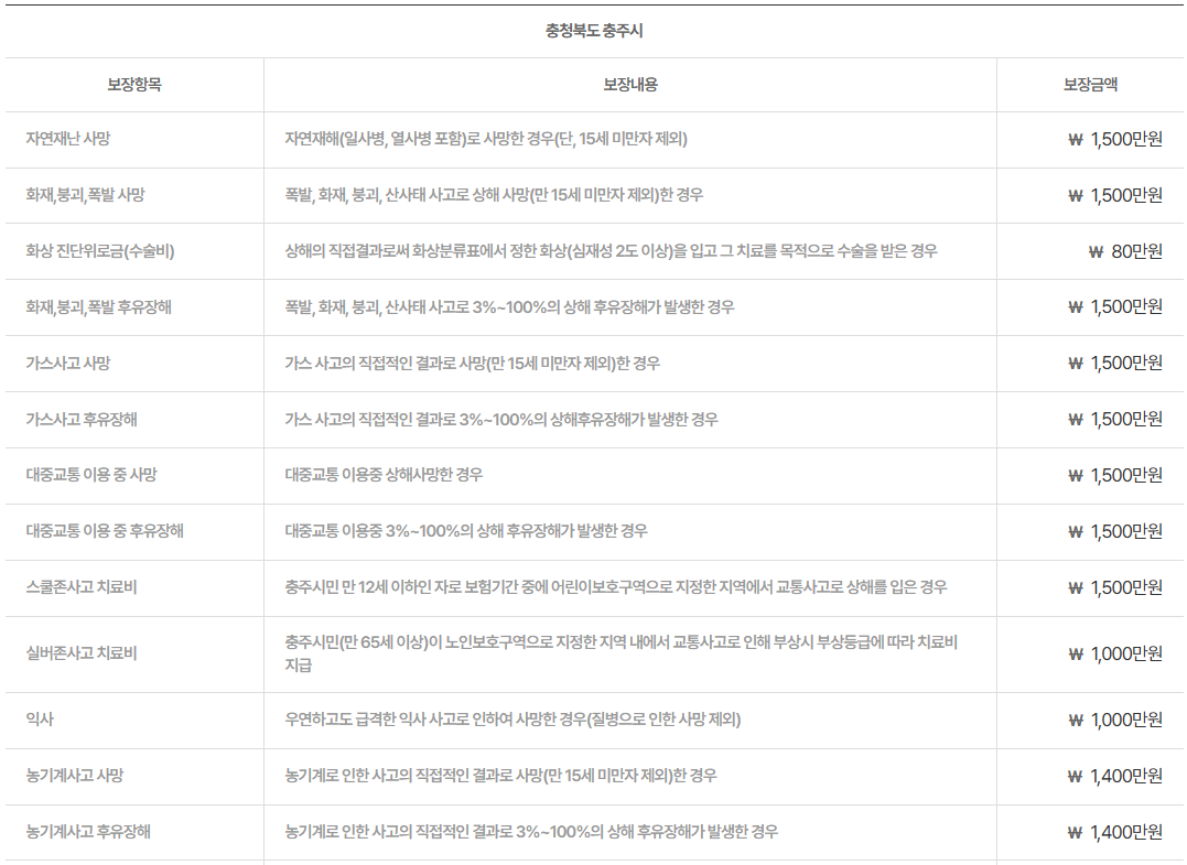 충주시 시민안전보험의 보장 내용