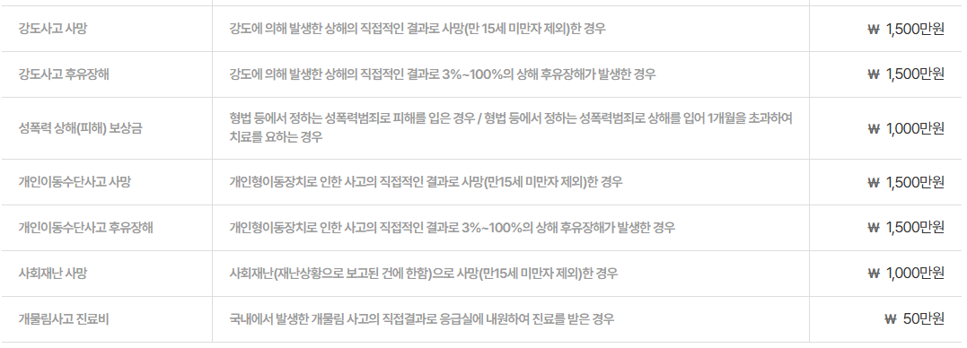 - 대중교통 사고, 스쿨존 사고 등 특정한 조건의 일반 사고도 보장됩니다.