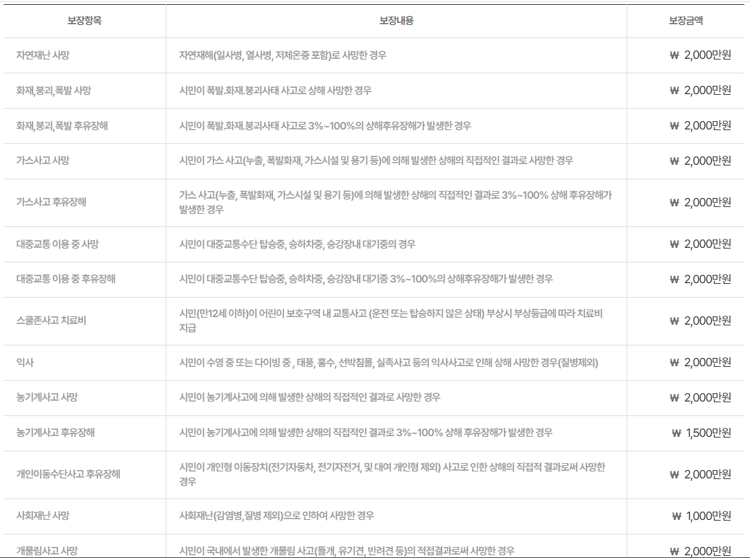 🔽 각종 상해시 최대 2,000만원 받을 수 있는 시민안전보험 아래에서 확인하실 수 있습니다. 🔽